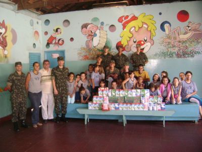 Na última quarta-feira, dia 06, a coordenadora da Creche Bom Jesus, Rose Martins Barbosa, recebeu o vereador Luiz Umberto Sarti, Kapetinha, os Sargentos Marcelo Duque e Ailton e demais atiradores, onde efetuaram a entrega da doação de leites arrecadados através da campanha feita pelo Tiro de Guerra.