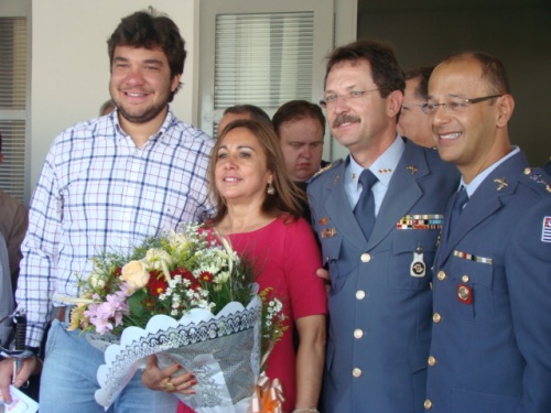 Ao final, entregou a sua espada usada na PM, ao filho Lucas e presenteou a esposa Eunice com um presente e um buque de flores.