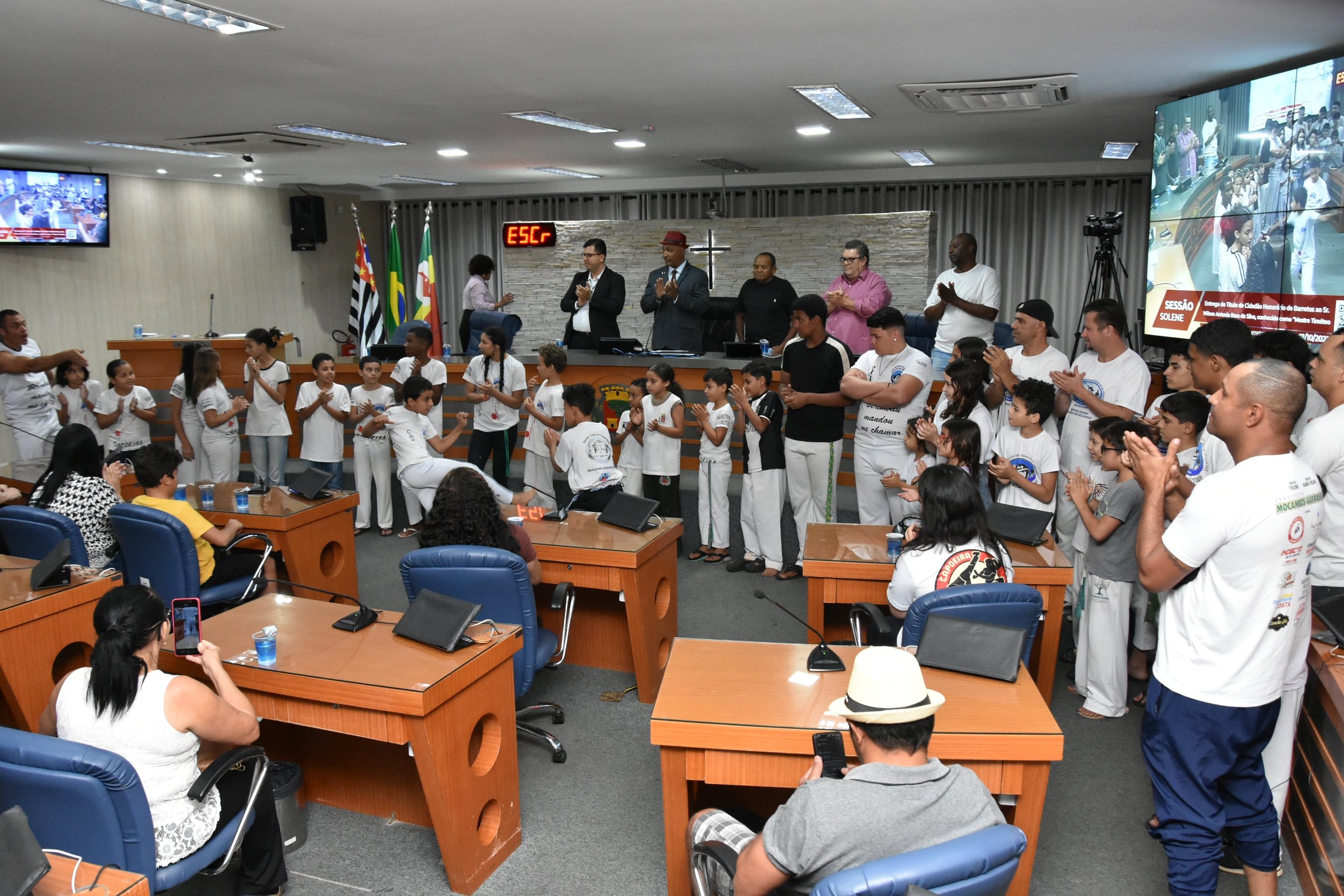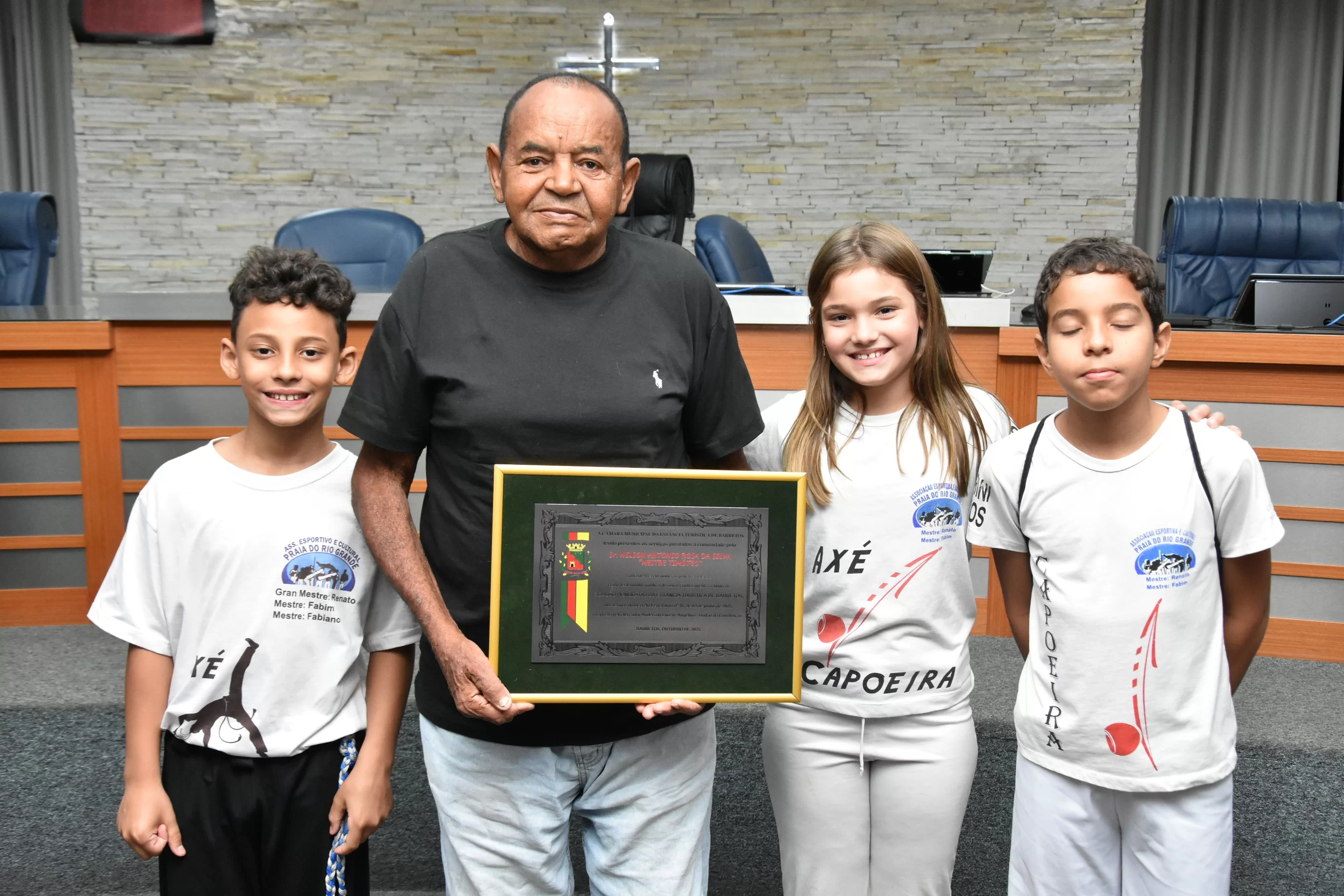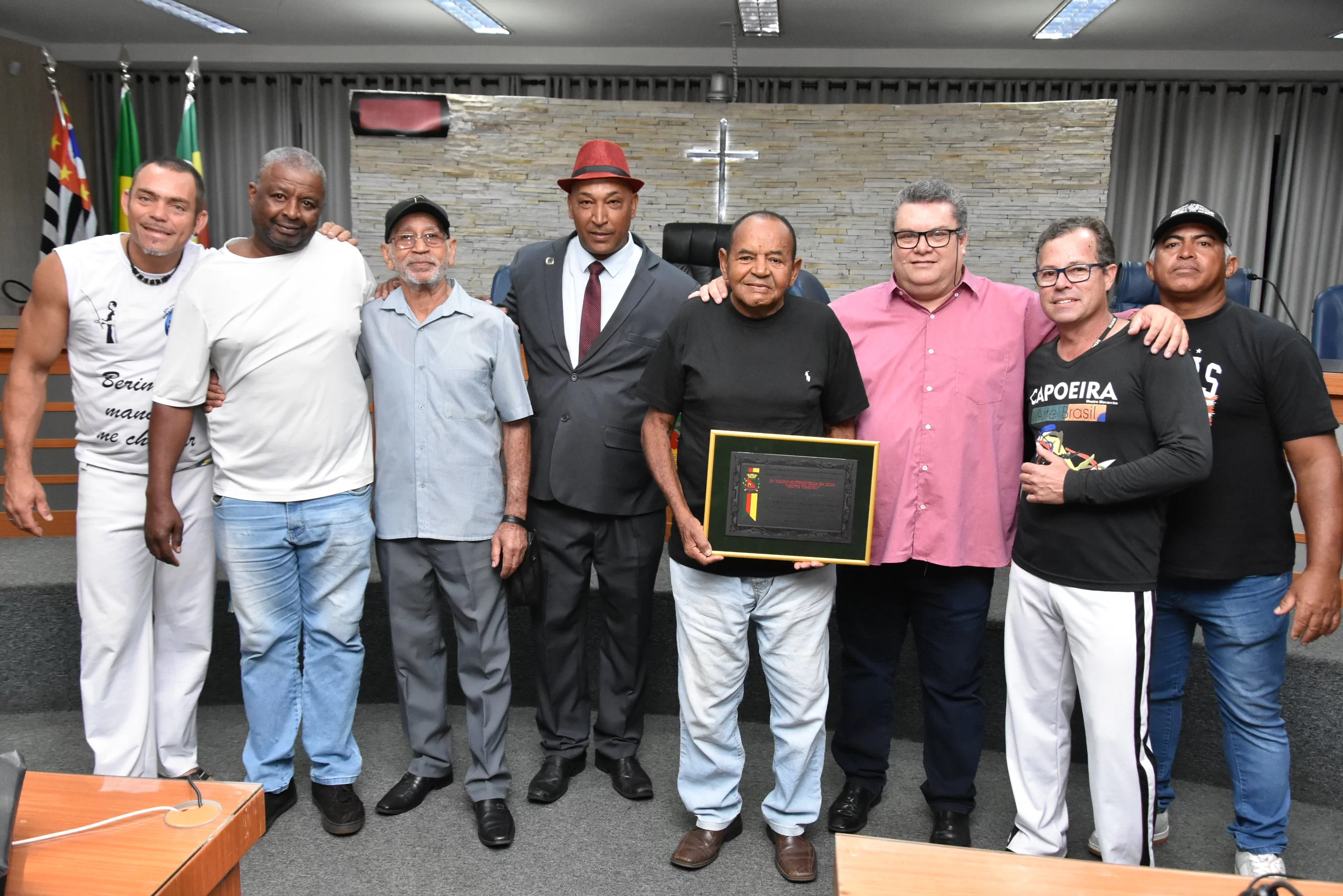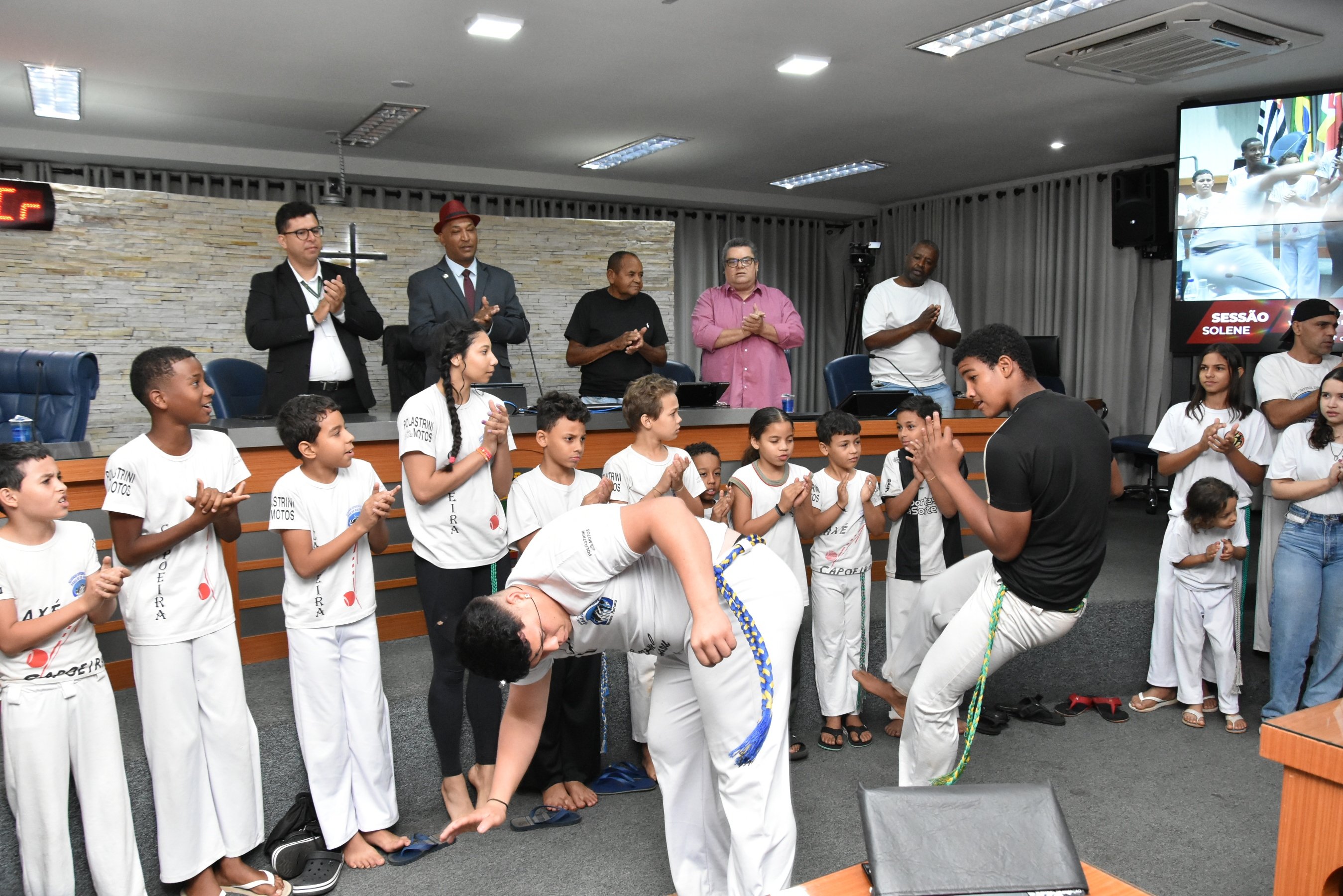 Familiares, amigos e vários alunos de capoeira (que fizeram uma linda apresentação) estiveram presentes à solenidade, que foi realizada no Plenário da Câmara Municipal.