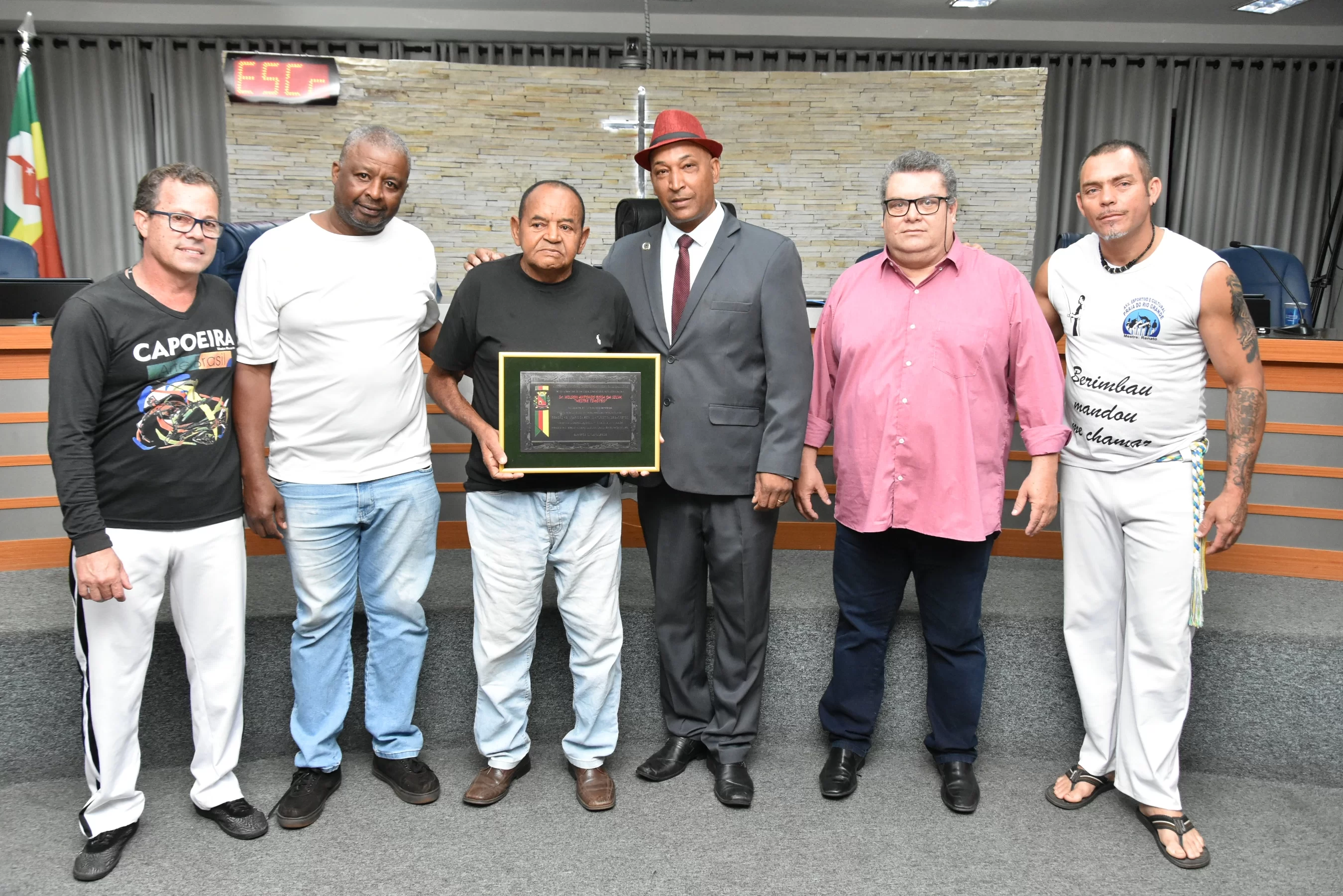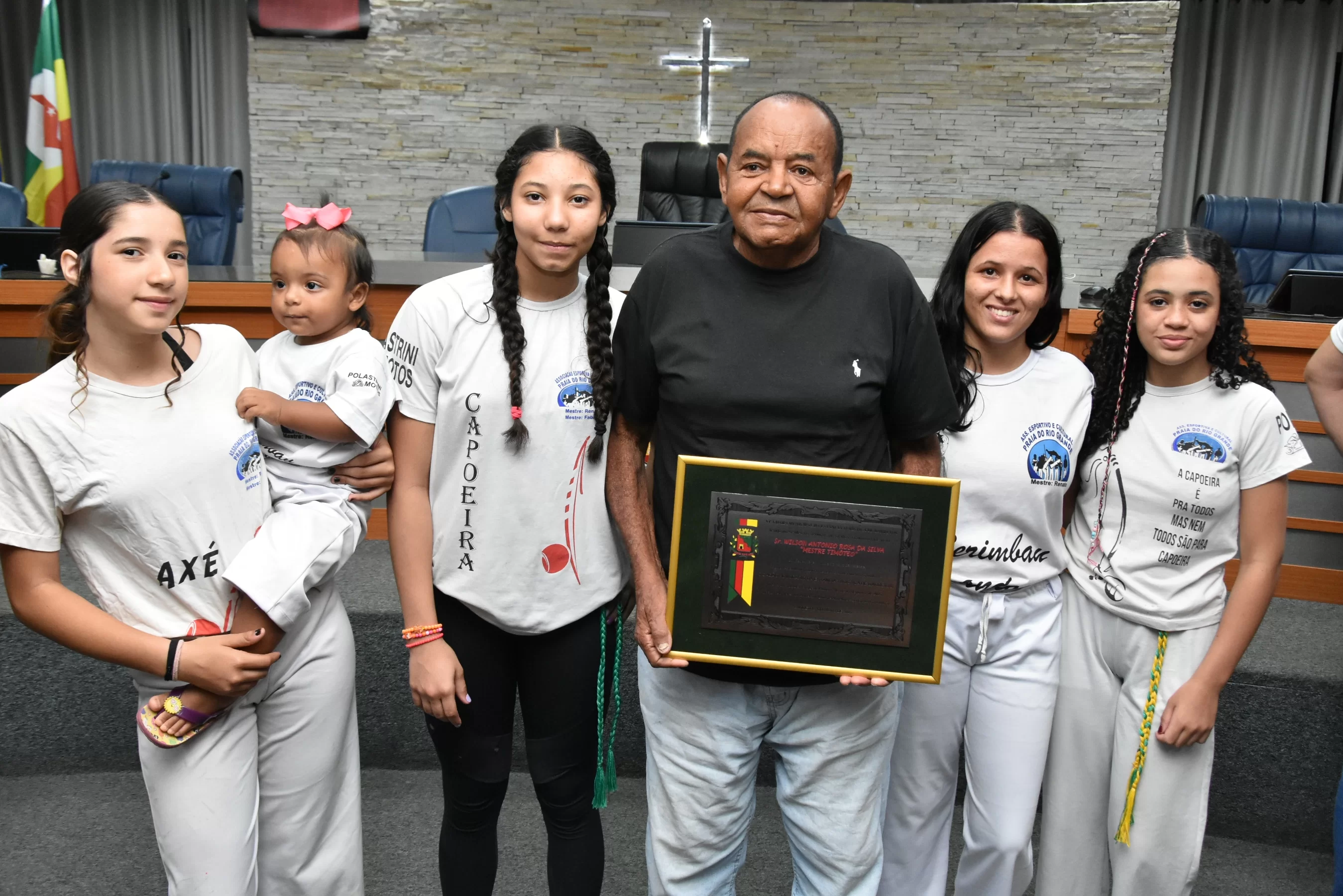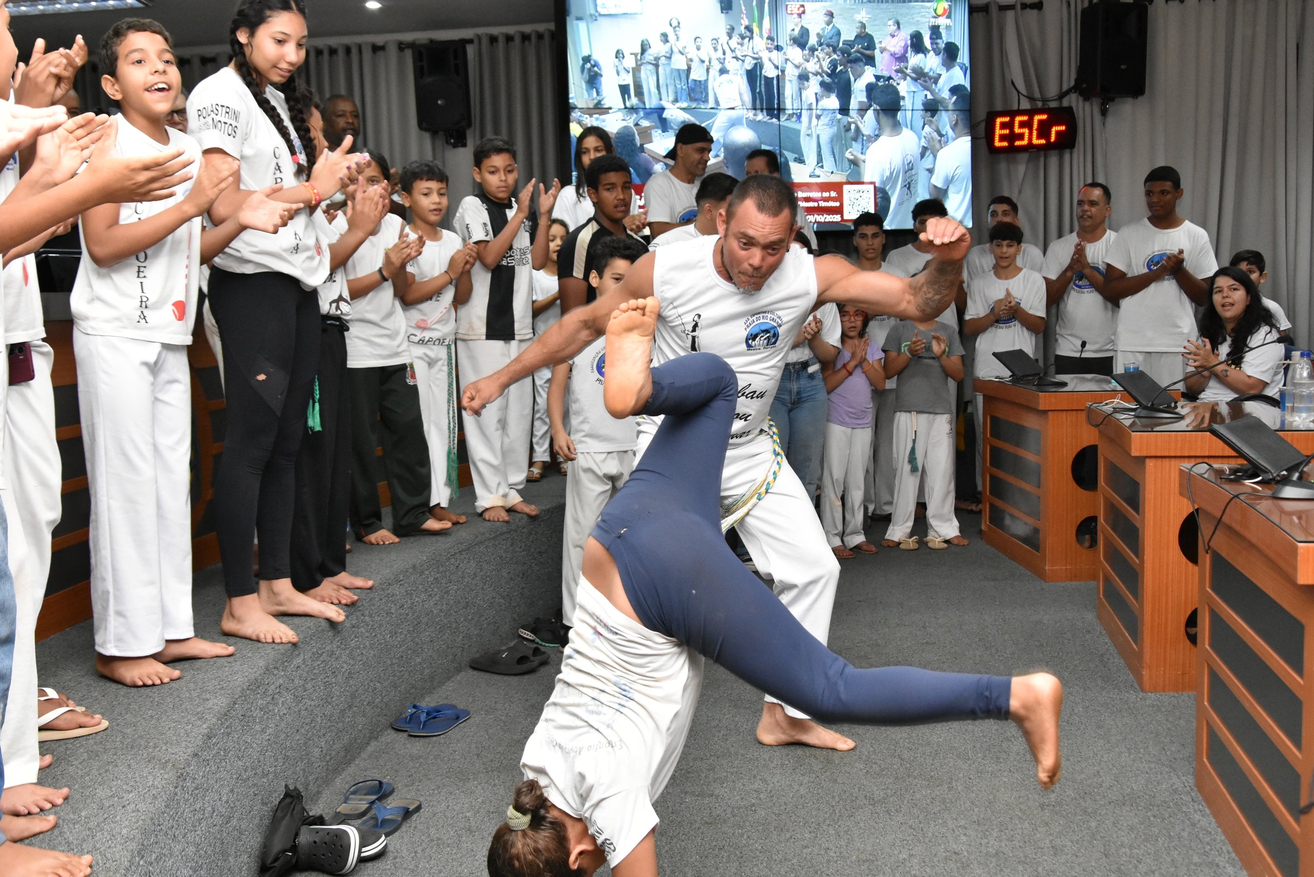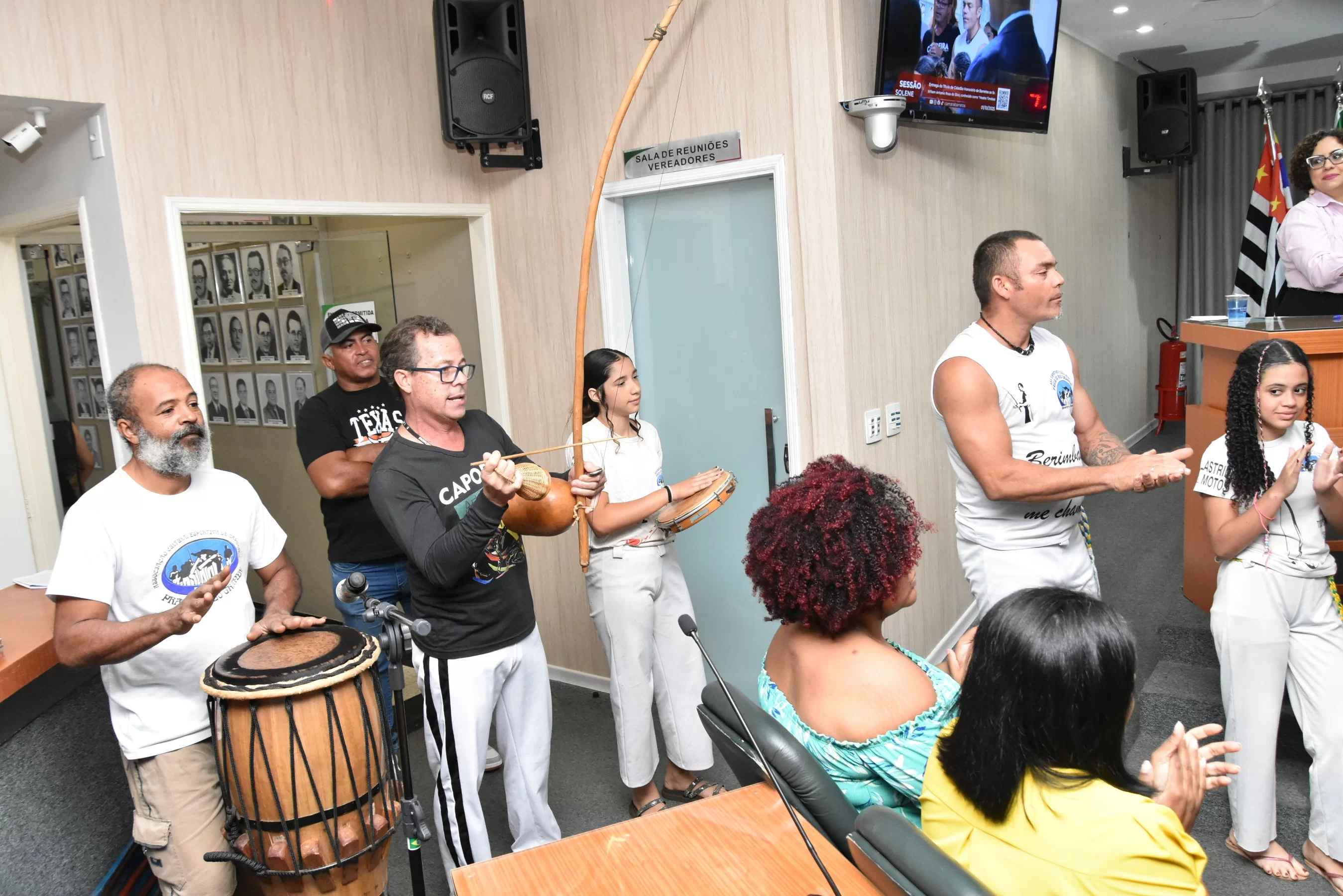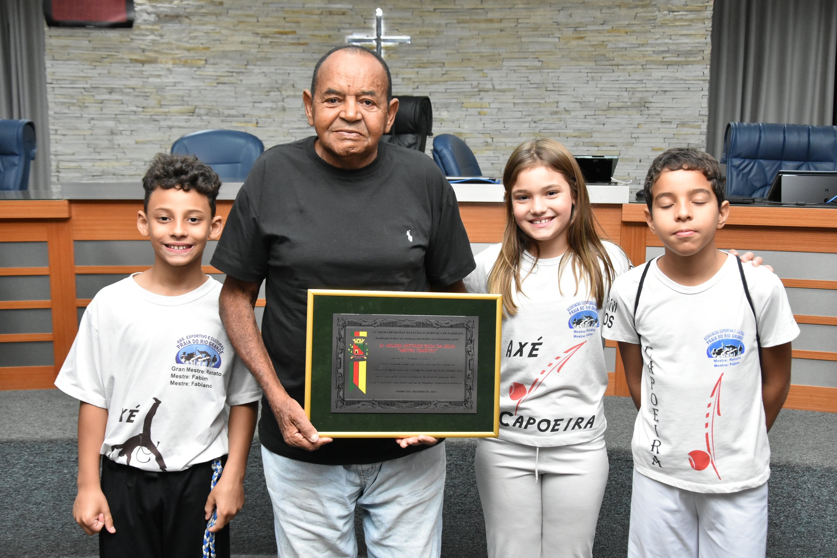 Familiares, amigos e vários alunos de capoeira (que fizeram uma linda apresentação) estiveram presentes à solenidade, que foi realizada no Plenário da Câmara Municipal.