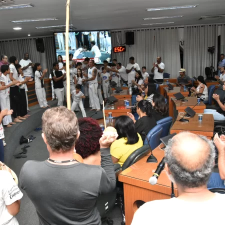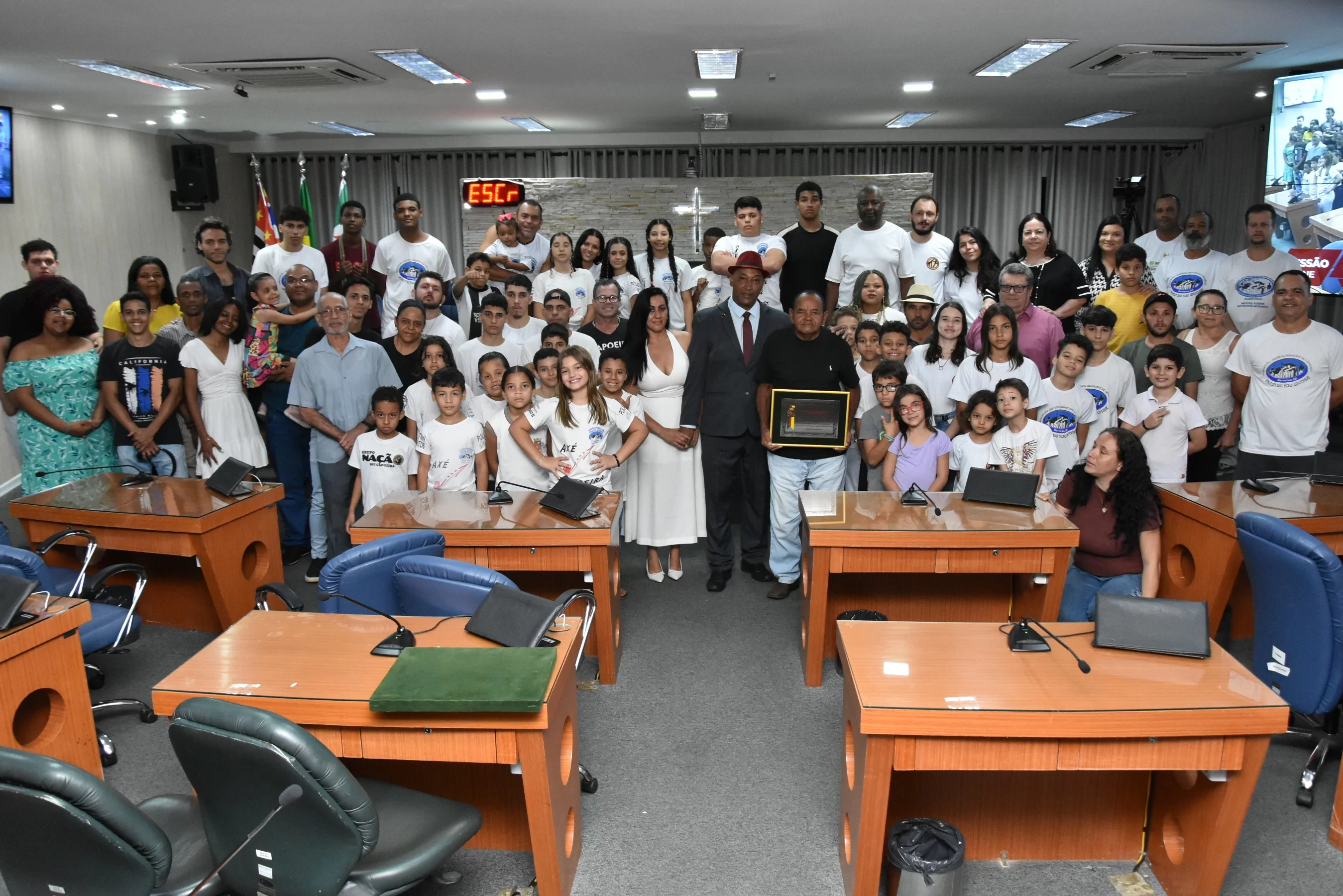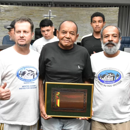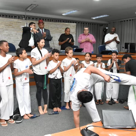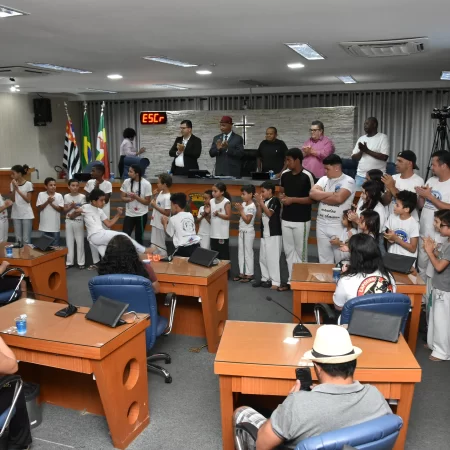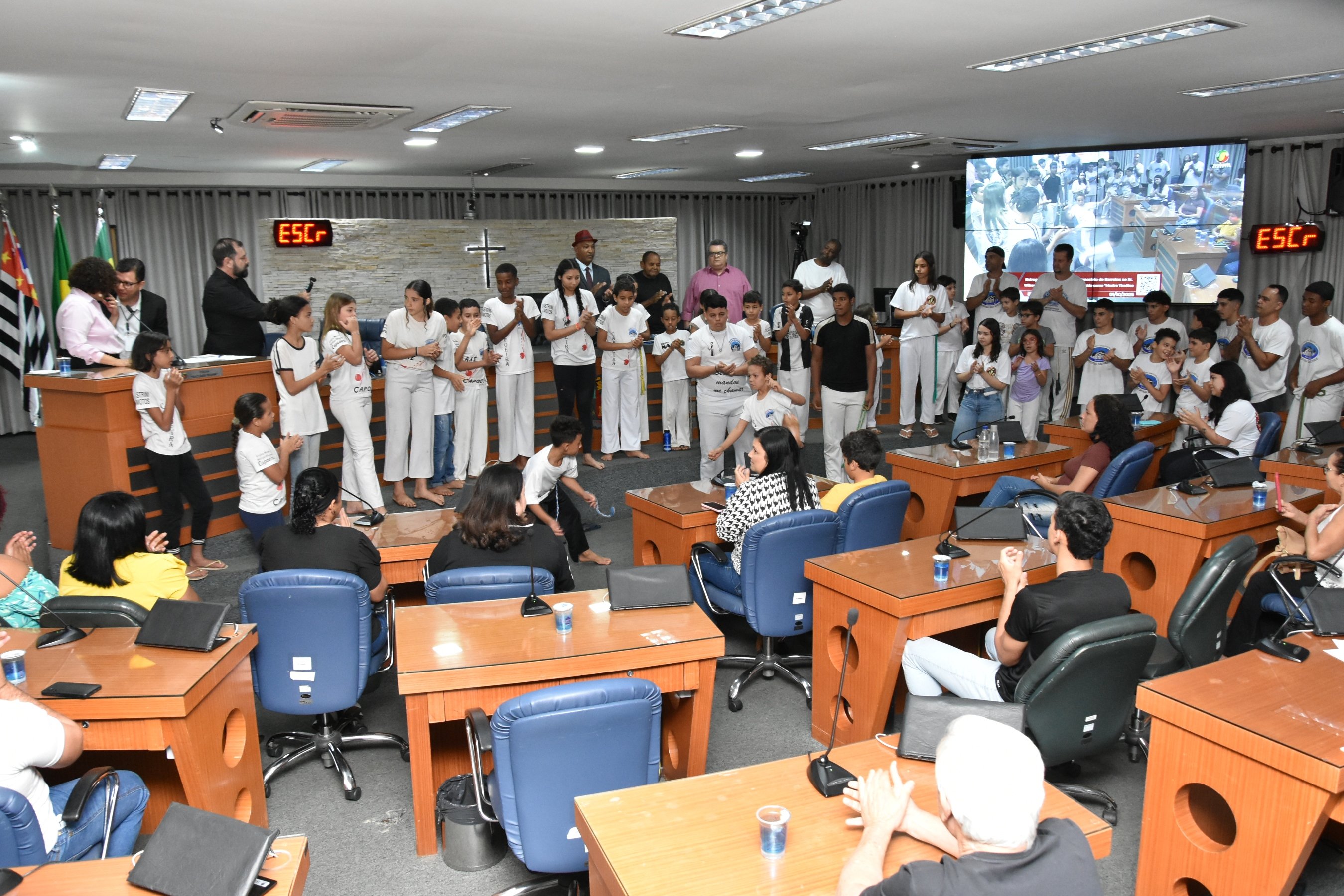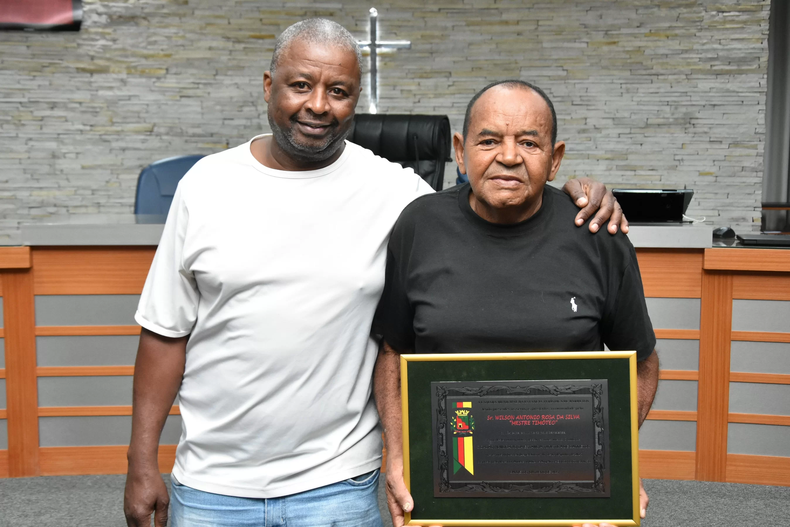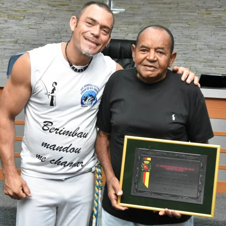 Familiares, amigos e vários alunos de capoeira (que fizeram uma linda apresentação) estiveram presentes à solenidade, que foi realizada no Plenário da Câmara Municipal.