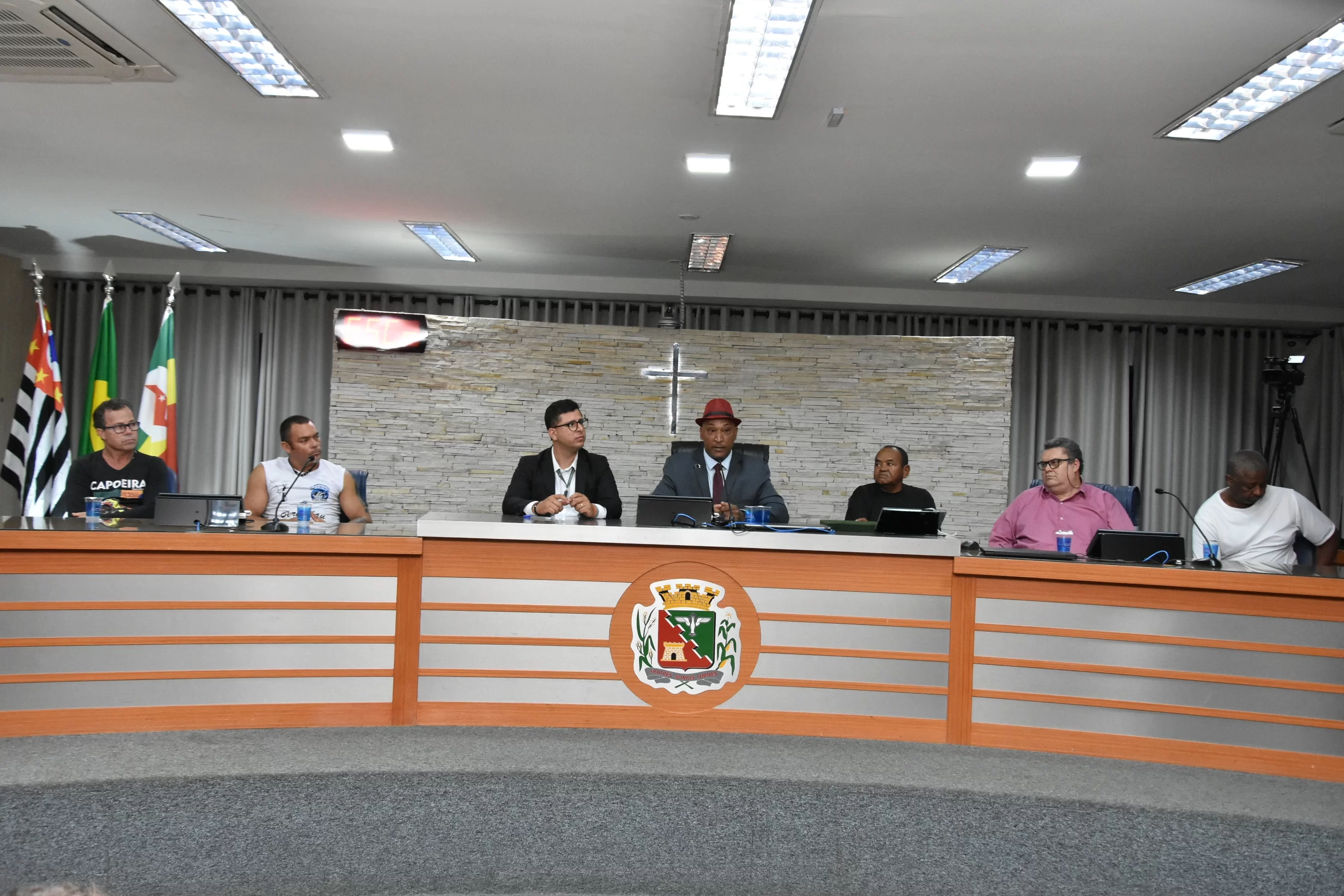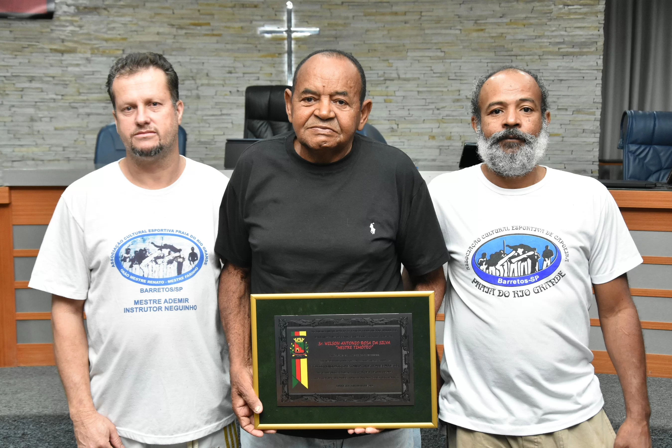 Fizeram parte da Mesa de Autoridades: o vereador proponente, Anderson Luiz de Angelino - Bodão (PODEMOS); o homenageado, Mestre Timóteo, João Batista Borges Júnior, Mestre Mano Velho, Willian Costa de Oliveira e Antonio Marcos "Mestre Macarrão". Os assessores parlamentares Daniel Luiz da Costa e Jefferson Martins Costa também estiveram presentes.